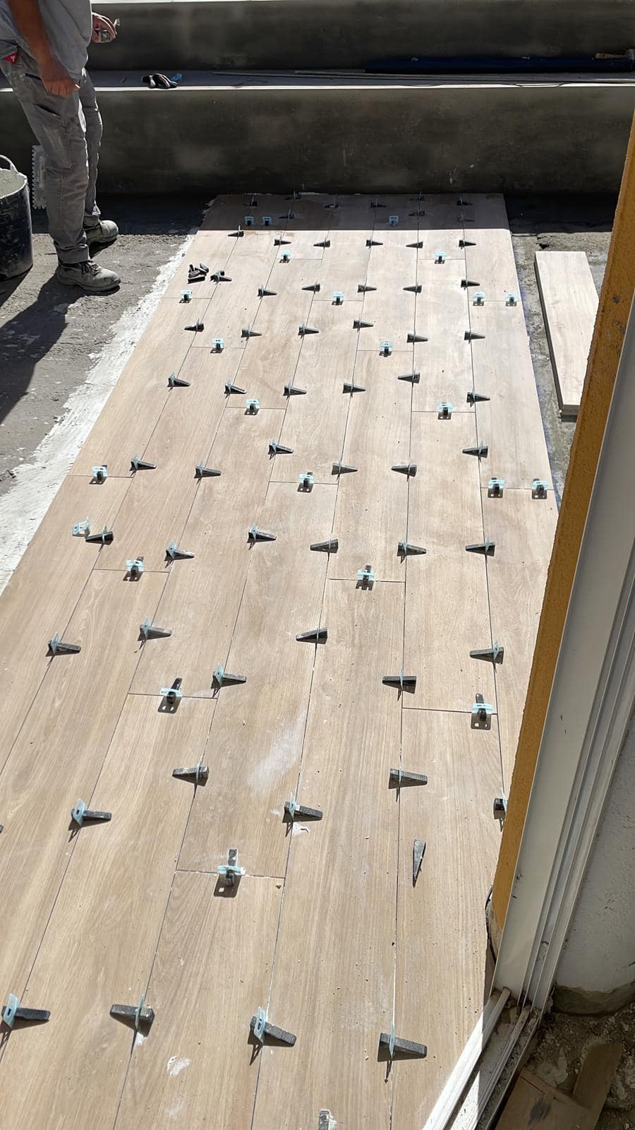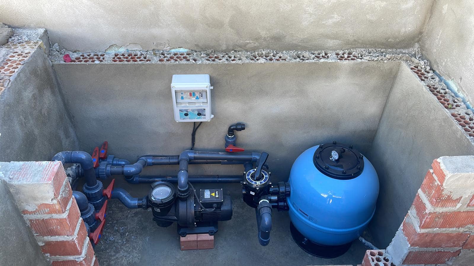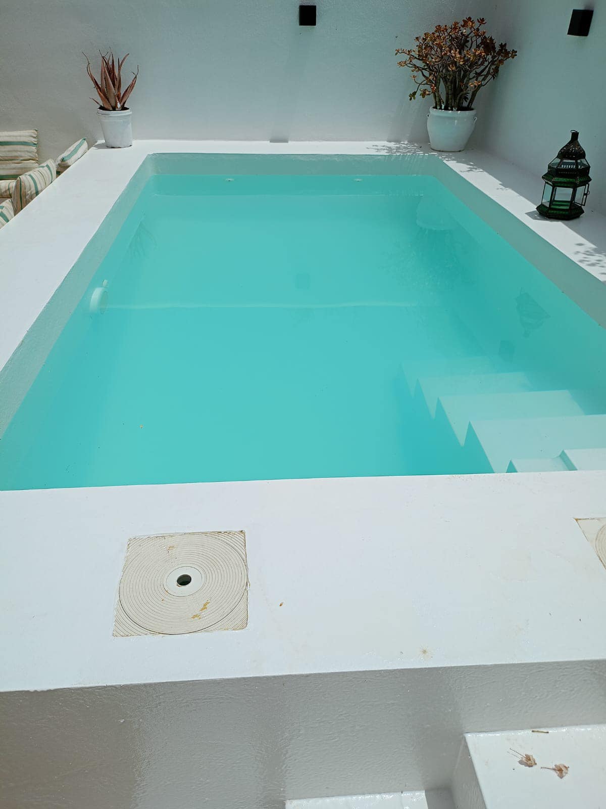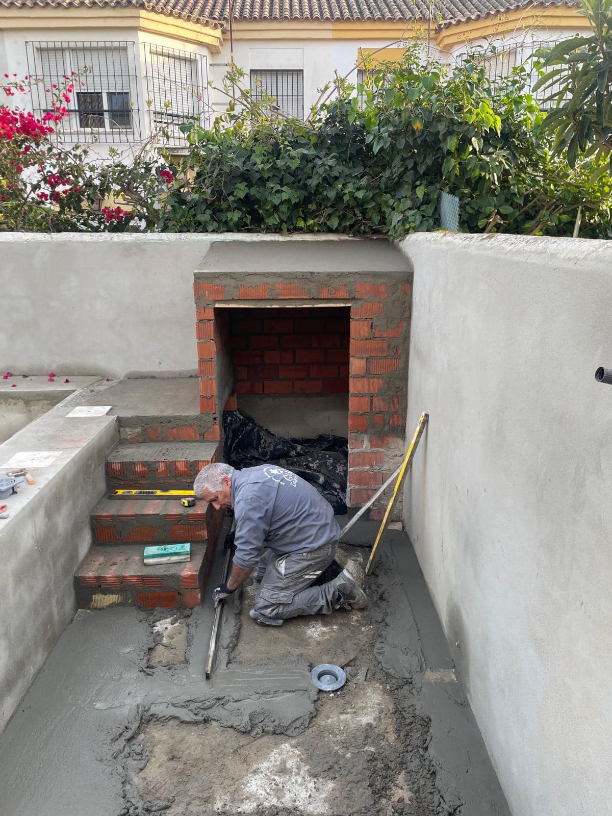 Preparación completa de patio con suelo de parquet , piscina , depuradora y toda la decoracion
